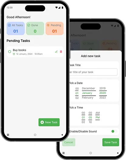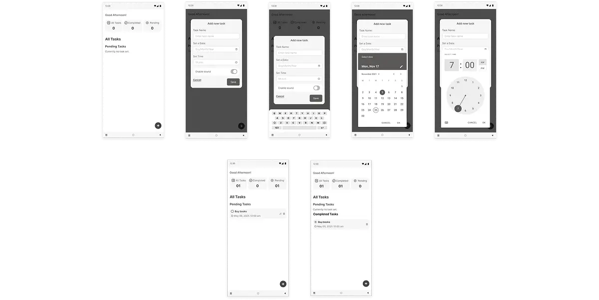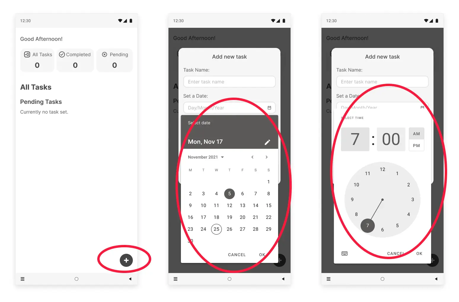 Based on usability study I found that the user felt difficulty in setting date and time so I added digital date and time picker which is easy.