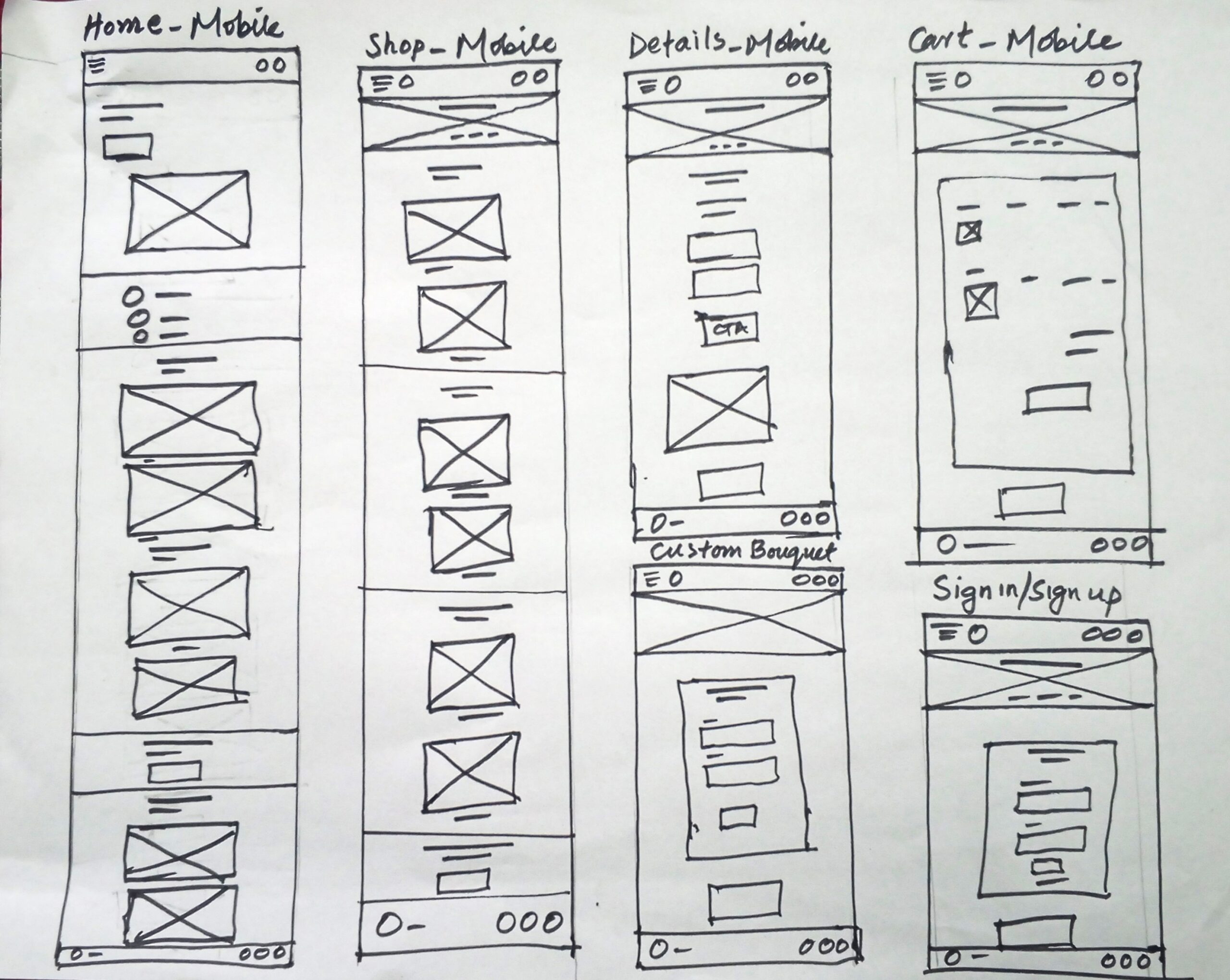Next, I sketched out paper wireframes for each screen in my app, keeping the user pain points about navigation, browsing, and checkout flow in mind.