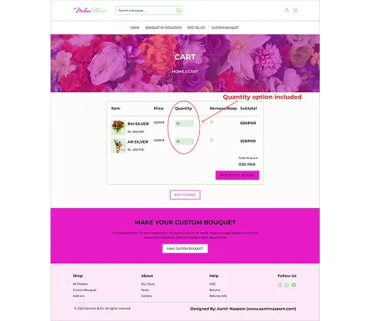 Neelum Flower is an online floral marketplace designed for users in Mansehra who want fresh, affordable flowers delivered to their doorstep. The website focuses on occasion-based arrangements (weddings, birthdays, anniversaries) and solves local challenges like unreliable flower quality and limited seasonal availability.